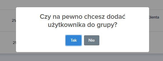 4. Pojawia się komunikat o pomyślnym dodaniu użytkownika do grupy. Przy użytkowniku, którego przypisaliśmy do grupy, w kolumnie “GRUPA(PLAN)”, widnieje nazwa tej właśnie grupy.