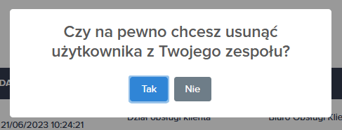 2. Pojawia się komunikat, który zatwierdzamy przyciskiem “Tak”.