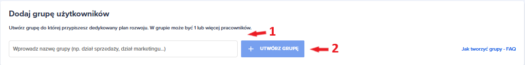 W przypadku gdy grupa posiada plan rozwoju i użytkownika opcja Ad.1 i Ad.3 znika jak na obrazku poniżej