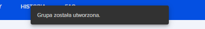 Po przyciśnięciu dostajemy komunikat “Grupa została dodana”
