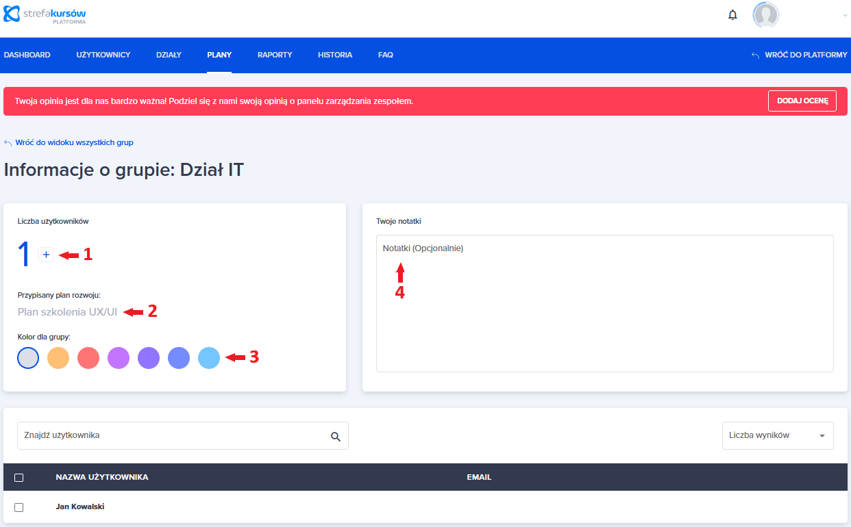 Ad. 4 - Pole tekstowe gdzie można notatki na temat danej grupy dodać